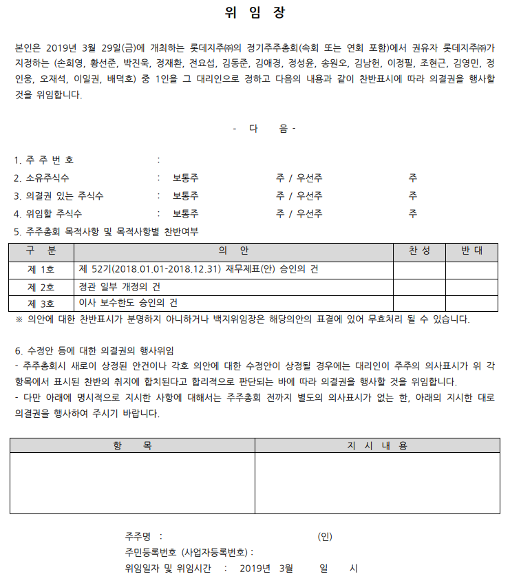 제52기 주주총회 위임장 및 참고자료 2019.03.14